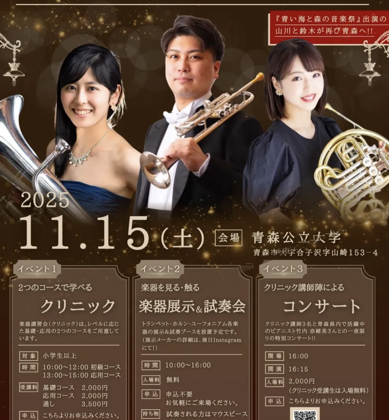 青森ブラスフェスティバル2025:開催日 11月15日(土)/会場 青森公立大学