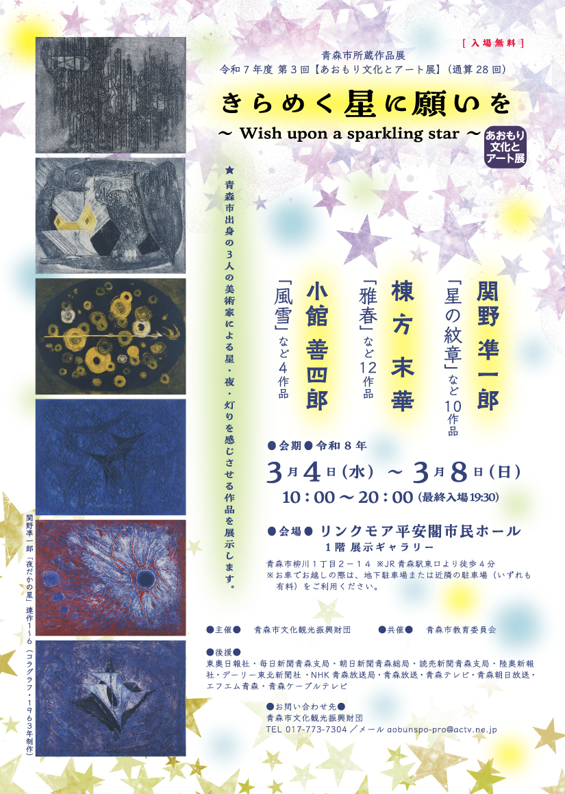 青森市出身の3人の美術家による星・夜・灯りを感じさせる作品を展示