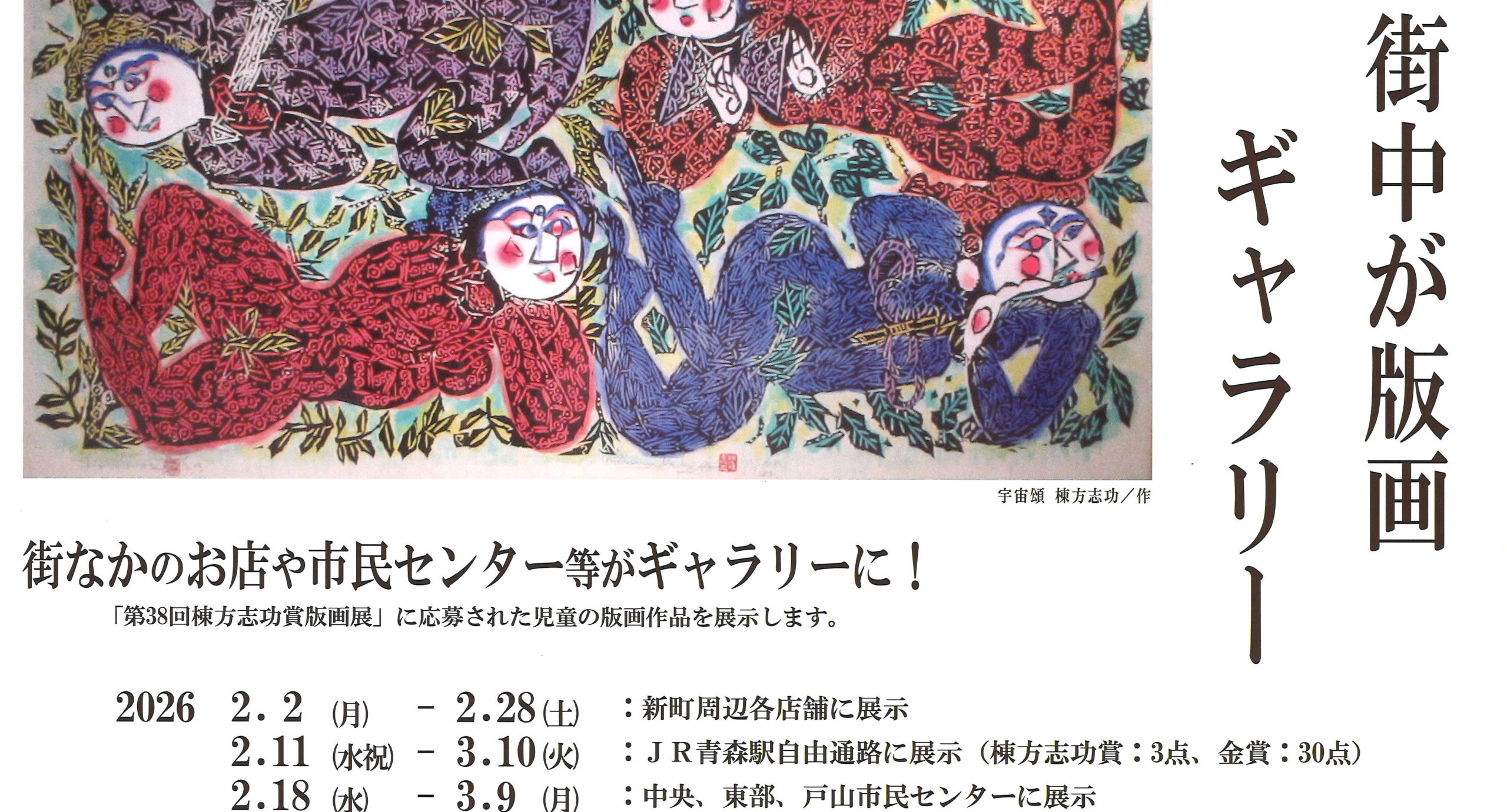 街なかのお店や市民センター等がギャラリーに!「第38回棟方志功賞版画展」に応募された児童の版画作品を展