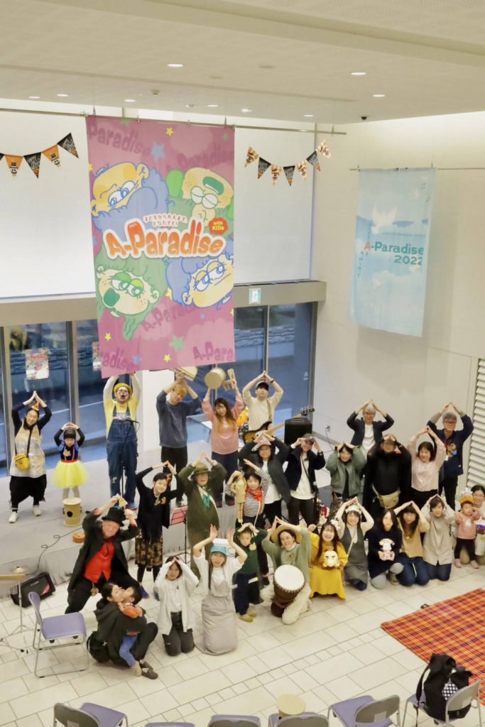 11 年目のA-Paradise。活動スタート当時は学生だった人たちも、今やニューファミリー世代。子育て当時者だからこそ、子どもも、子どものまわりの人たちも、みんなで楽しめるイベントをやってみよう。そんな思いで立ち上がった、今年のA-Paradise は、「with KIDs(子ども達と一緒に)」を想定して、1 日目に音楽と読み語りのステージを行いました。また、2 日間は「for KIDs(子ども達のために)」と題して、手作り楽器のワークショップと参加型コンサート、楽器体験、段ボールや毛糸の工作コーナーなど、盛りだくさん!フード・ドリンク販売、アート・クラフト販売もどこか子どもが喜ぶものがあるなど、スタッフ・関係者総出で、ご来場のみなさんをお迎えしました。