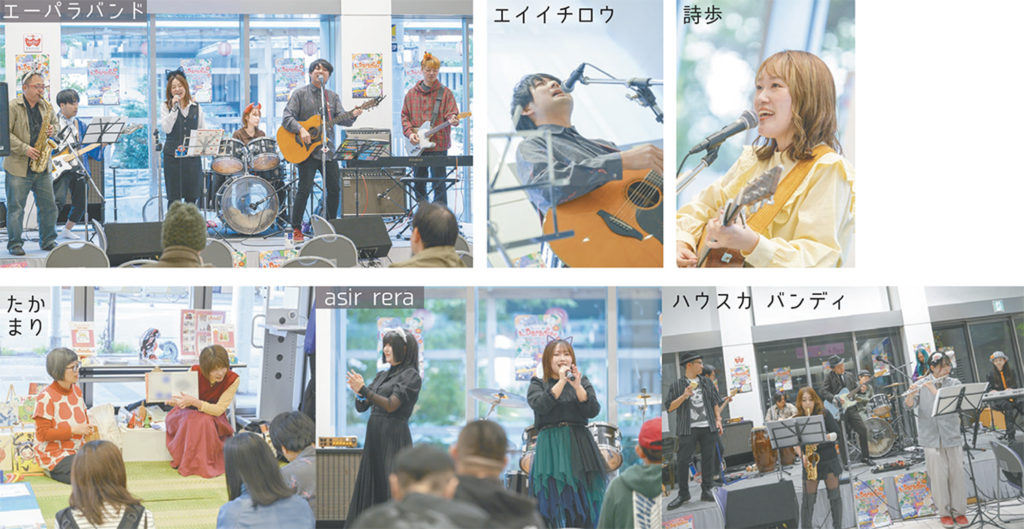 1 日目は、オープニングの「エーパラバンド」からスタート!「エイイチロウ」「詩歩」「asir rera」「ハウスカ バンディ」と、地元ミュージシャンのみなさんの演奏で盛り上がりました。あいまには「絵本と音楽ユニットたかまり」による絵本読み語りをキッズスペースで行い、お子さんはもちろん、お父さんお母さん、おとなのみなさんにも楽しんでいただけました。ライアーやジャンベなど、珍しい楽器もご紹介!