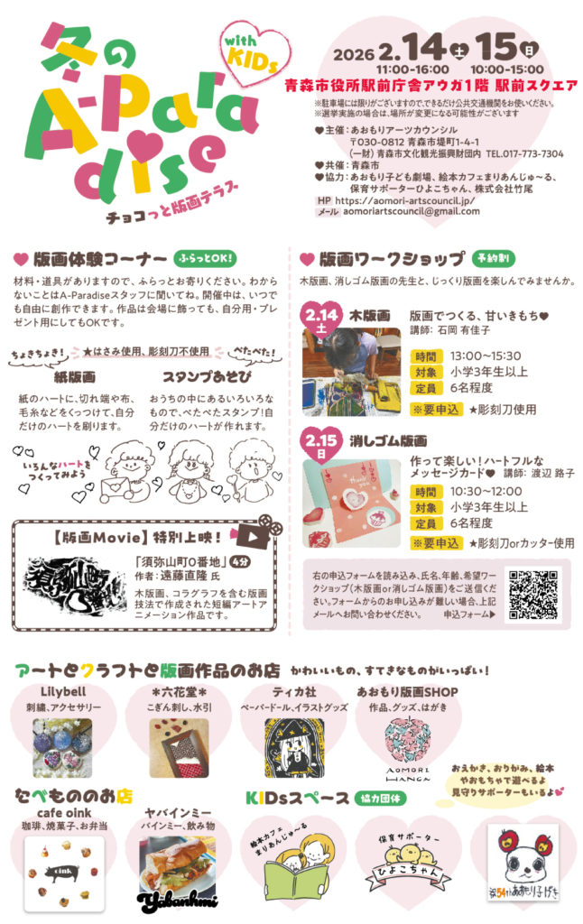 「冬のA-Paradise with KIDs〜チョコっと版画テラス〜」(2.14-15)会場変更