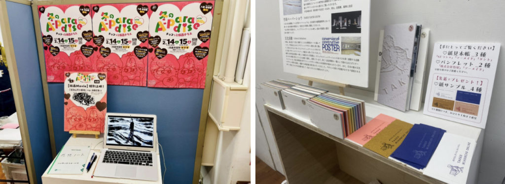 【版画ムービーの上映、紙サンプル展示】